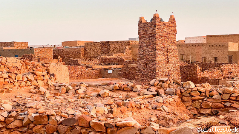 アドラール地方の砂漠にある古都ワダンは、サハラ交易の中継地として栄えた町です。現在は遺跡のような静かな町ですが、石造りの家々が並ぶ旧市街は中世の雰囲気を色濃く残しています。砂漠に囲まれたこの町からは、サハラの壮大な景色を望むことができます。