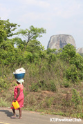 村を通ればカラフルな布を巻いた女性が頭の上に物をのせて歩いている。