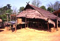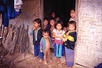 モン族(タイではメオ族と呼ぶ)の集落には、貧しく暗い家でたくさんの家族がひしめき合うように暮らしていた。山岳小数民族の間で信仰されているピー(精霊)信仰はここでも根強く残っている。のろいのような歌を口ずさむ男が家の戸口で紙を燃やしていた。豚を殺した時におはらいをするためだそうだ。
