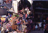 毎週木曜と日曜、ここチチカステナンゴの町の人口は、普段の1,000人余りがその20倍にも膨れ上がる。それは市場が開かれるため、周辺の村々からたくさんのインディヘナが集まってくるからだ。インディヘナとはマヤ系の末裔の民のことである。色鮮やかな民族衣装に身を包んだインディヘナがトウモロコシや豆をはじめとする生鮮食料品や日用品、そして民芸品などを持ち寄って売るわけだ。