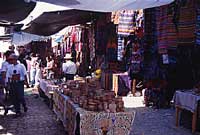 インディヘナの土産物屋をひやかすのも、チチカステナンゴでの大きな楽しみである。細い路地を挟んで両側に軒を連ねる店の数はかなりのものだ。