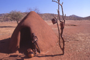 着いたところは、ヒンバ族の仮居住型(テンポラリー)の村。定住型のヒンバ族もいるらしいが、ここの人々はちがう。見渡す限りの草原に7つほどの村が点在している。大家族で暮らさず、家族単位というのが特徴だ。