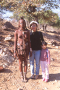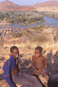 朝、キャンプを出て少し走ると、途中でヒンバ族のおばあさん、お姉さん、お兄さん子供・・・と順に車に便乗させてあげるのだ。村へ行く人々にとってはまさに乗りあいタクシーである。身体に塗ってある茶色いのがシートにつかないようにあらかじめ布を敷いてから乗せてあげるアレックスは手馴れたもの。「モロモロ(こんにちは)」「タリウィ(お元気?)」と陽気に言葉を交わす彼女。簡単なので真似して声を掛けてみた。皆、ニコニコして挨拶してくれる、とてもフレンドリーな人々だ。