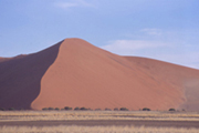 ナミブ砂漠の広がるナミビア西部一帯を占めるナミブ・ナウクラフト公園は、南アのクルーガーに次いでアフリカで2番目に大きいことで知られでいる。世界最高の標高を誇る迫力あるデューン(砂丘)が見られ、そこに登ることも出来るのが、ここナミブ砂漠だ。