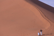 そんなヒンバ族に出会うのを最大の目的に私はナミビアへの2度目の旅に出た。前回7年前、オーソドックスなスワコプムント周辺だけの旅だったので、今回はもっともっと奥地を目指したのである。まず、北部のダマラランドで砂漠の象を見て、カオコランドでヒンバ族に出会い、それから一路南へ、世界で最高の高さを誇る砂丘が見られる南部の砂漠ソッサスフレイへ足を延ばした。