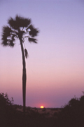 ロッジのレストランでのディナーは7時から。ちょうど夕陽の頃、ゲストたちは皆バーの外で夕陽を眺めつつ1杯やっている。真っ赤な太陽が大きすぎるほどで、地平線に沈む姿はまさにサバンナの日没!すごく感動的な色だ。日本では絶対に見られない色である。