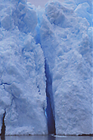 ペリト・モレノ氷河は南米大陸最南端、パタゴニア地方の大自然を代表する大氷河で、自然の世界遺産に指定されている。1年に2kmにわたる氷河が崩落し続ける、まさに「生きている」氷河。気の遠くなるような年月を経てやって来た氷河の最前部の壁面は、透明なブルーのギザギザで美しい造形美を見せてくれる。深い亀裂が入っている部分の内部は深いブルーで吸い込まれそうに魅惑的である。