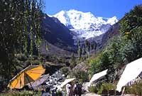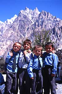 しかしながら、この村は四方八方、360度のパノラマで雪を抱く7,000kmを越える山々に囲まれた谷間に位置する。晴れた日の朝、雲ひとつない青空のもと、壮麗な稜線を見せる山ラカポシ(7,788km)や、すっきりした形のウルタル(7,323km)を眺めながら、熱いチャイ(紅茶)をホテルの屋上で啜(すす)る、朝食前のひととき。