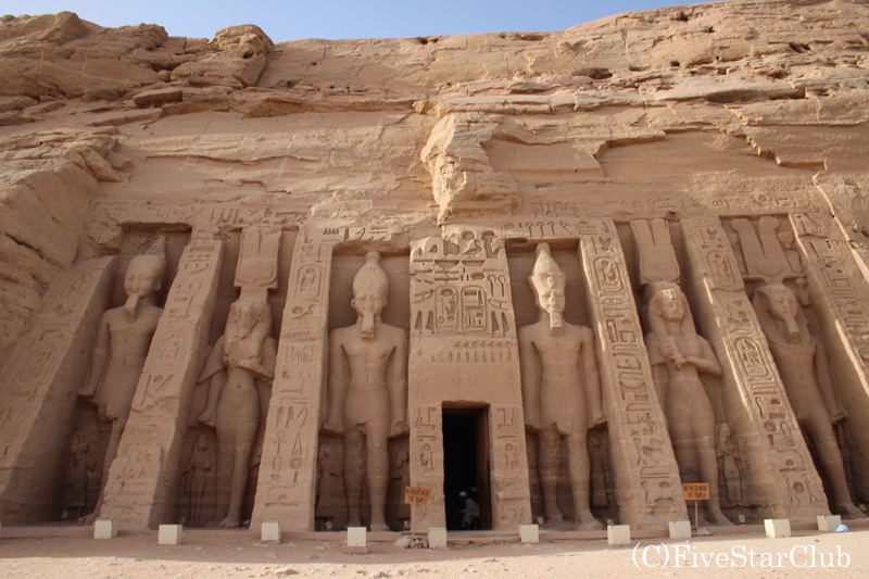 大神殿はラムセス2世の圧倒的な権力を実感させる巨大な岩窟神殿。小神殿はそれに比べるとサイズは小さいですが、古代エジプトでは珍しく王と王妃が対等に表現されています。