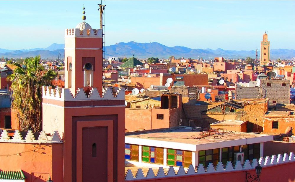 マラケシュのホテルは、町のど真ん中ジャマエルフナ広場から、徒歩2分とロケーションがバツグンのイスレーンホテルです。ホテルのテラスからはマラケシュのシンボル・クトゥビアの塔が目の前に見えます。