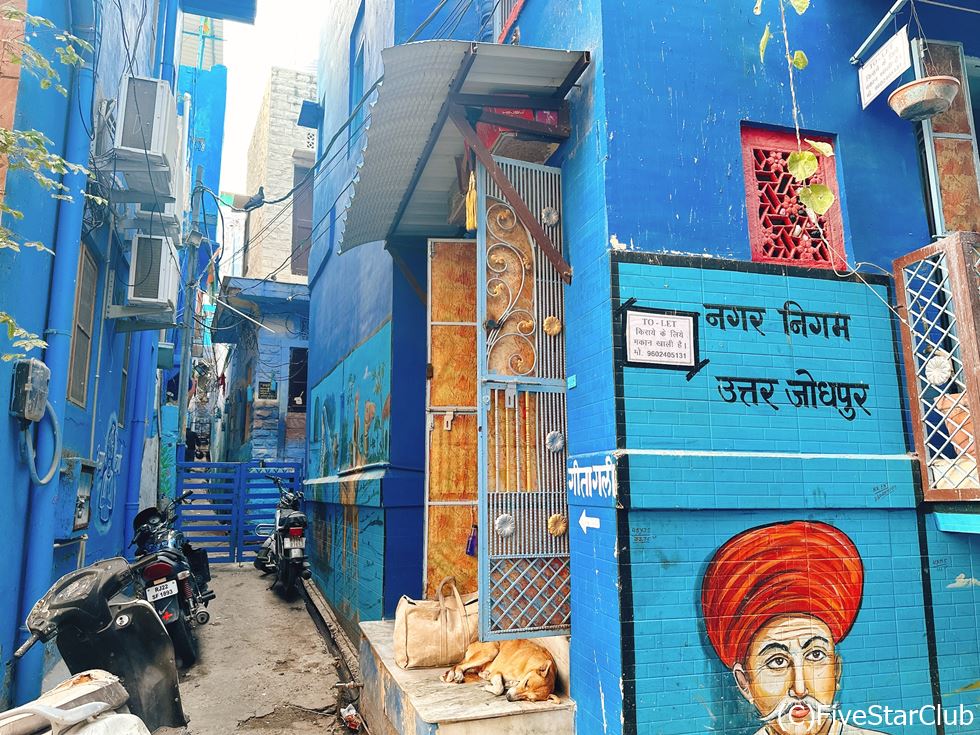 美しい青い町にいる野良犬もインドならでは
