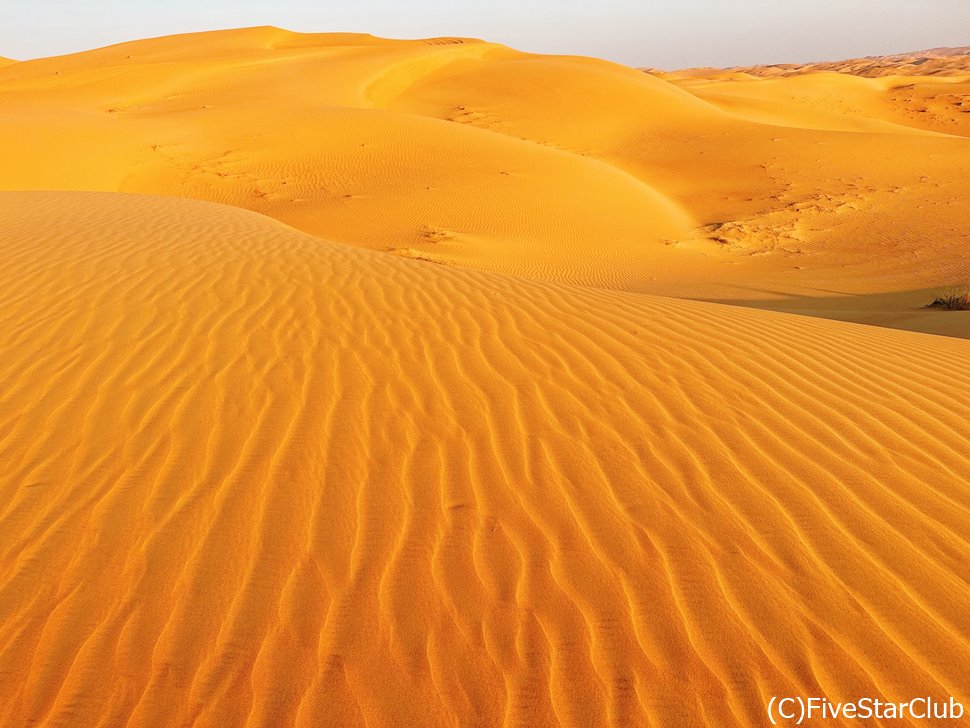 一方、リワ砂漠はどこまでも果てしなく広がる砂丘群。高低差が大きく、上から下までは30mから50mの高さの砂丘がたくさんあります。なんと、そこを自分の足で駆け降りることもできます!それはまるで空を飛んでいるかのようです。砂丘(デューン)のきめ細かい美しさも全く違います。