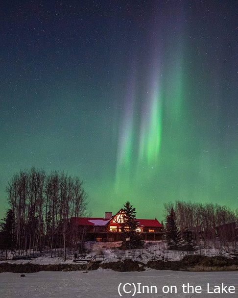 実は私自身、家族と「イン・オン・ザ・レイク」に3泊しましたが、2泊目まではオーロラを見ることができませんでした。予報アプリでも3泊目の予測はあまり良くなかったため、家族と「今回はオーロラは見ないで帰国することになりそうだね」と話していたのですが、その夜、うっすらとオーロラが姿を現してくれました。
