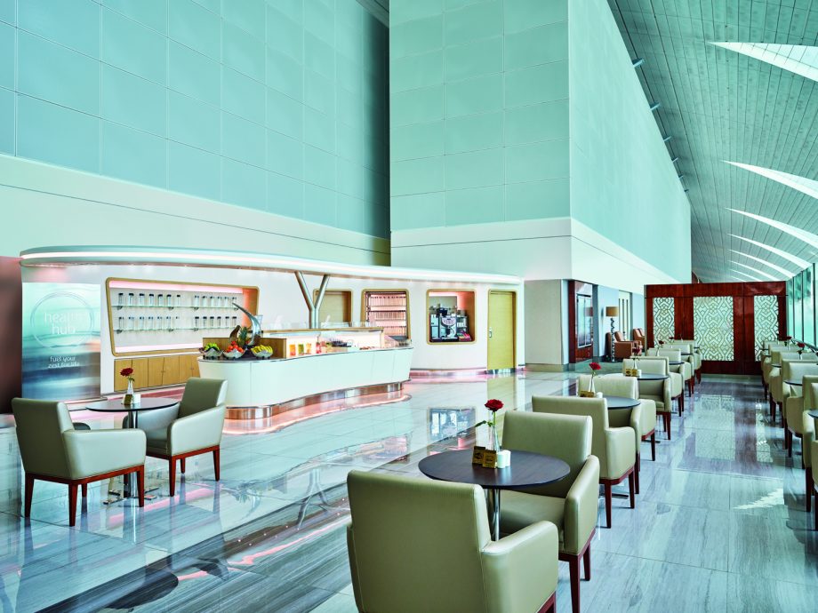 ビジネスクラスのシートは人間工学に基づいて設計されたフラット・ベッド・シートで快適にくつろげます。各シートにはクラス最大級の23インチのモニター、ミニバー、木目調の広々としたテーブル、USBポート、充電用コンセントが備え付けられ、大型のタブレット型コントローラーでシートのすべてを一括操作が可能。アメニティはブルガリで男女別に用意。機内食は前菜から始まるコース料理でメインは3種類から選択可能。ワインやシャンパンと共に楽しめます。特にワインはフランスに独自のシャトーを所有してワインをストック、熟成まで手掛けています。成田空港の「エミレーツラウンジ」では搭乗前からエミレーツ航空のサービスも体感できます。