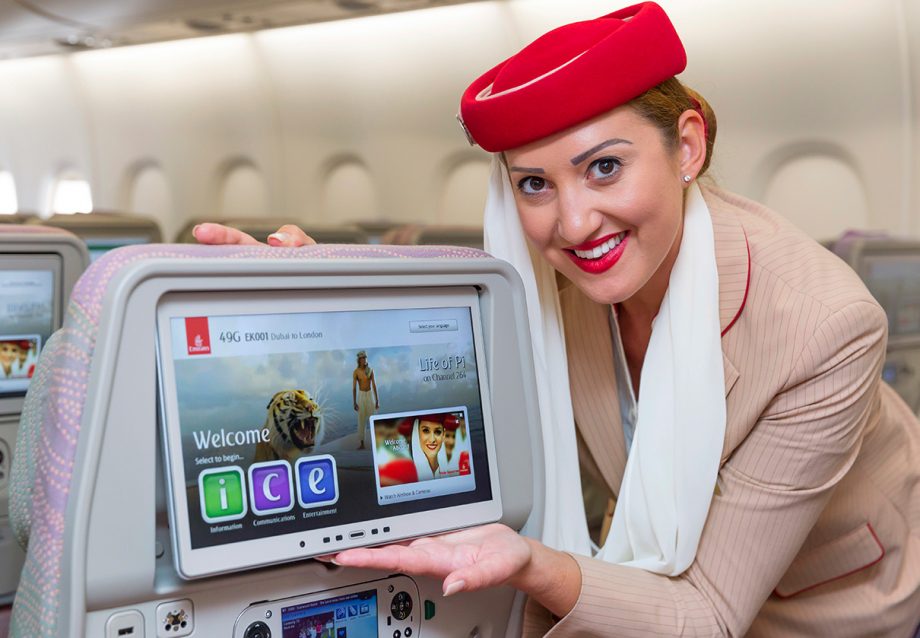 機内も楽しいエミレーツ航空 目的地まではあっという間