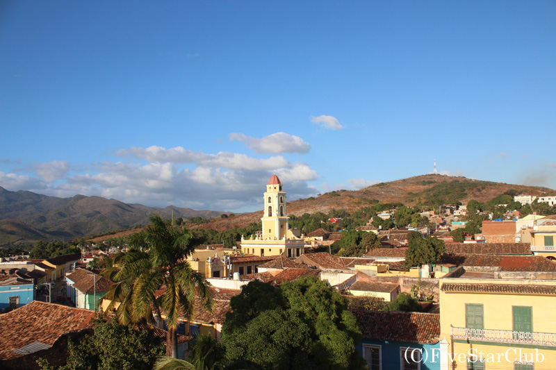 かつて砂糖交易で栄え、植民地時代の町並みを色濃く残す古都トリニダーは世界遺産に登録されています。敷き詰められた石畳の上に、パステルカラーで統一された色彩豊かなコロニアル様式の建物が並ぶ町並みは足を運んで見に行く価値があります。マヨール広場を中心に広がる旧市街で特に存在感のある革命博物館の塔は、キューバの通貨CUC25セントのコインの絵柄になっています。頂上からは橙色の屋根で統一されたトリニダーの全景と、その奥にうっすらと青く広がるカリブ海も望めます